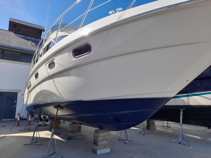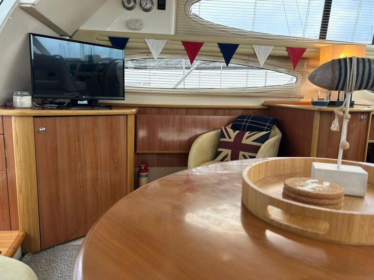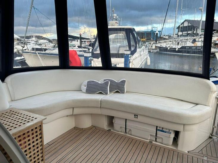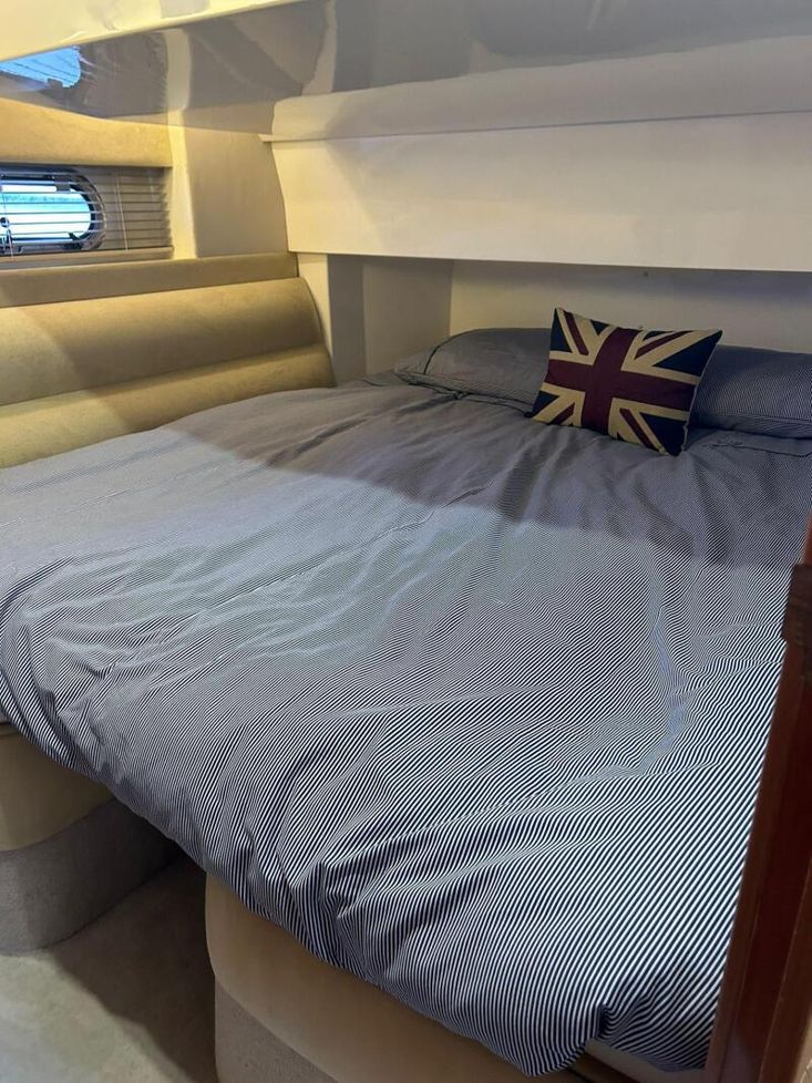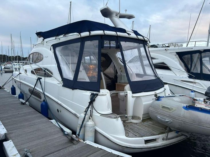 We are pleased to present to the market an exceptionally well presented Sealine F37. Built in 2003 but benefitting from a near complete overhaul and refurbishment in 2016 costing over £100,000. Fitted with twin Volvo Penta KAD43 inboards refurbished 2016. Engines serviced 2025 with hull antifouled and anodes replaced April 2025 this is a unique vessel that has received extensive refurbishment to the interior joinery furnishings, upholstery and electrics. New fully enclosed canopy and flybridge cover fitted 2023, diesel heating in cabins and saloon, Raymarine Navigational suite and much more! Currently afloat with a berth available at Conwy Marina, don't miss out book a viewing now!